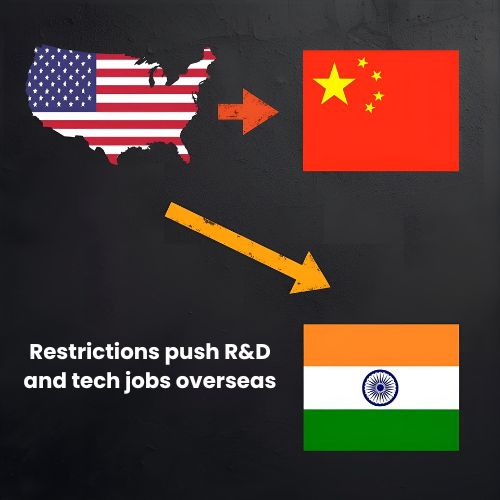 Studies, including one by Britta Glennon of the Wharton School, show that when H-1B restrictions tighten, firms don’t necessarily hire more U.S. workers. Instead, they shift R&D and tech operations overseas, particularly to India and China. Rather than creating local jobs, such policies can accelerate offshoring, taking innovation and investment with them.